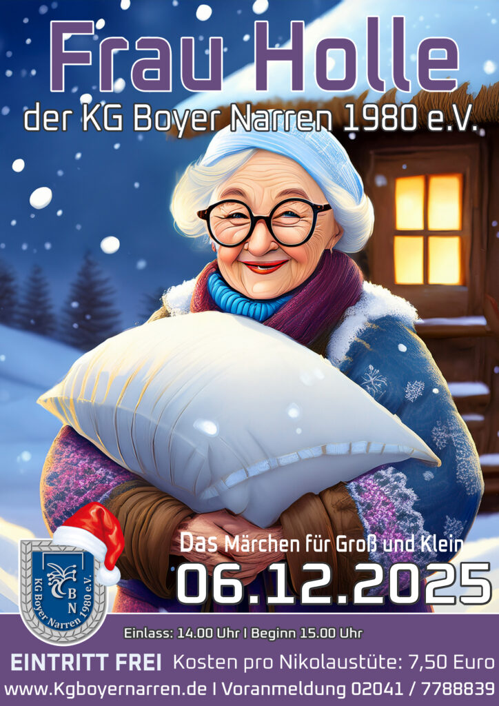 Am 06. Dezember 2025 lädt euch die KG Boyer Narren 1980 e.V. herzlich ein zu einer ganz besonderen Aufführung von „Frau Holle – das Märchen für Groß und Klein“. 🌨️👵🪶